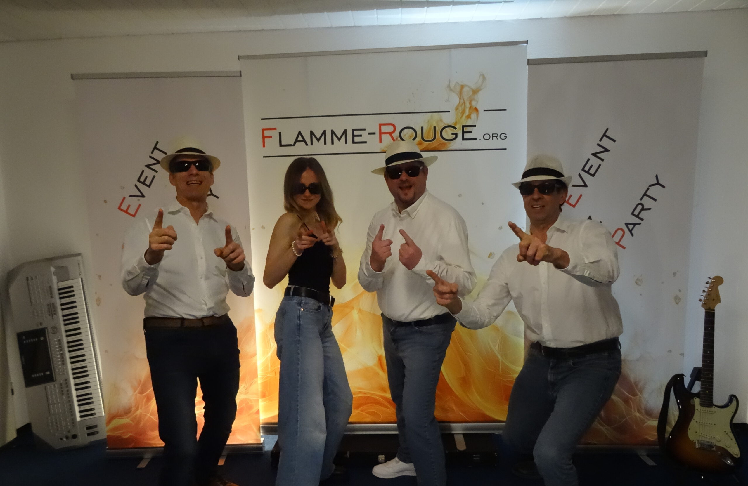 Hier finden Sie alle wichtigen und nützlichen Info rund um die Cover-,Eventband Flamme-Rouge. Wussten Sie ? Flamme Rouge oder rote Flamme wird im Radsport auch „Teufelslappen“ genannt und signalisiert den Beginn des Zielsprints. Bei Flamme-Rouge ist für jeden was dabei, egal ob schnell, langsam, rockig, dezent, Ballade.